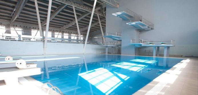Осуществить цикл работ по созданию многофункционального комплекса со спортивными бассейнами. Бассейны: плавательный 50x25м., прыжковый 25x25м. с 10-ти метровой вышкой, воздушной подушкой безопасности, детский бассейн 10x5м). Водоизмещение 6000м3., (20 000м2). Проектирование, строительство (20 000 м2). Объект введен в эксплуатацию в 2010 году.