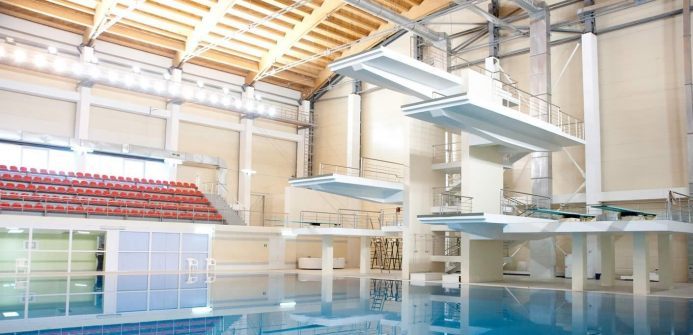 Осуществить полный цикл работ по созданию многофункционального комплекса со спортивными бассейнами для проведения соревнований и бассейном для обучения плаванию. Бассейны: плавательный 50×25 м, прыжковый 25×25 м с 10-метровой вышкой, и воздушной подушкой безопасности. Водоизмещение 5000 м3 (40 000 м2). Разработали проектно–сметную документацию, осуществили поставку оборудования и строительство. Объект введён в эксплуатацию в 2009 году.